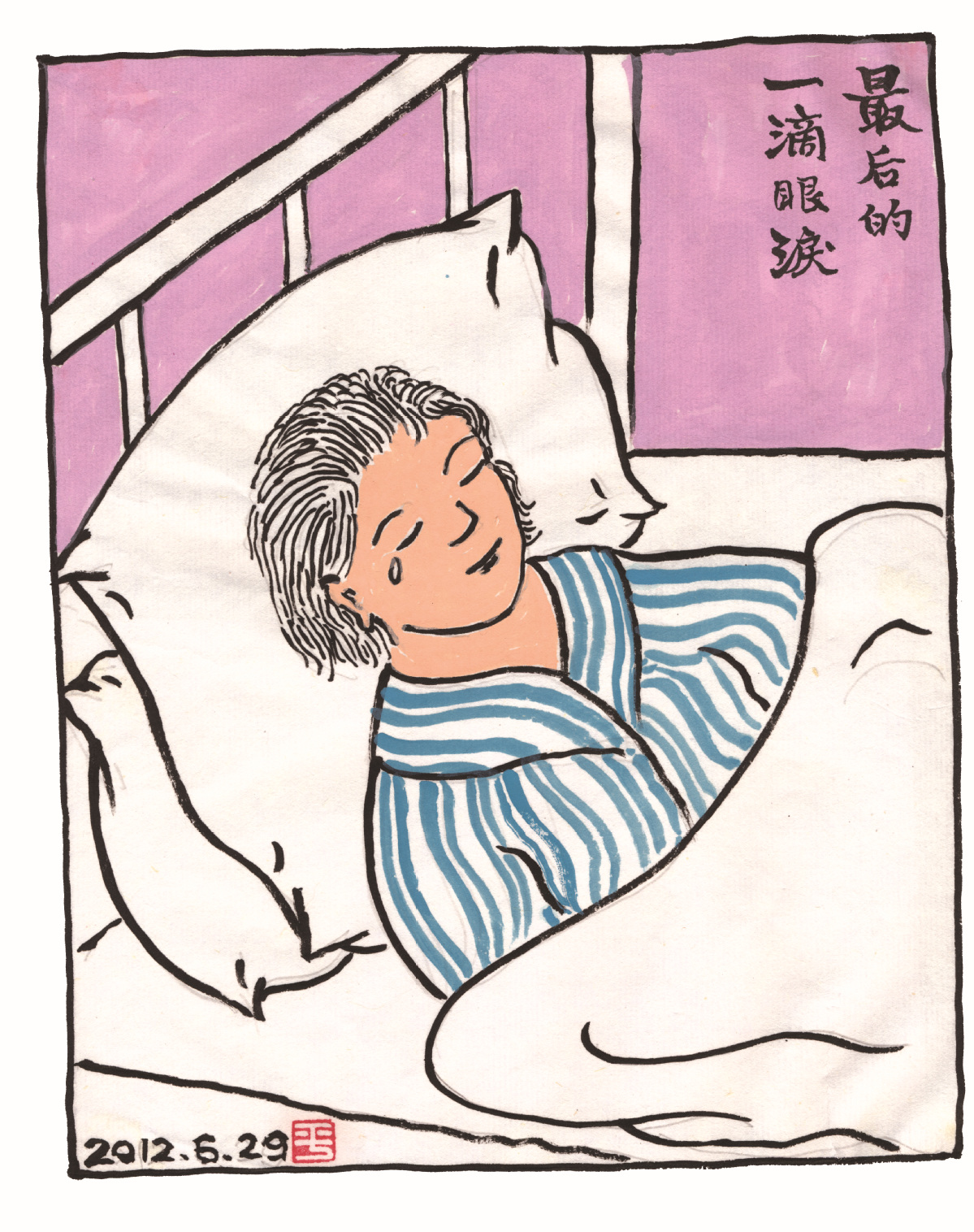 A 2012 illustration titled The Last Teardrop, portraying Rao's wife on her sickbed. [Photo provided to China Daily] |
