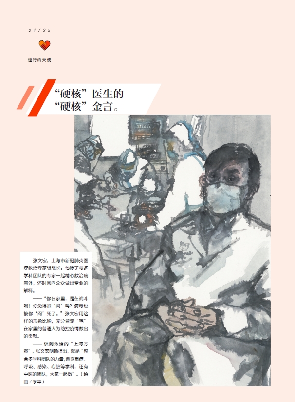 A portrait of doctor Zhang Wenhong in Nixing de Tianshi. [Photo provided to China Daily] |