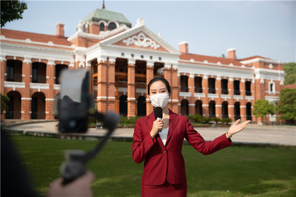 A live broadcast takes place at the Museum of Wuchang Uprising of 1911 Revolution in Wuhan, Central China's Hubei province, on April 13, 2020. [Photo/Xinhua] |