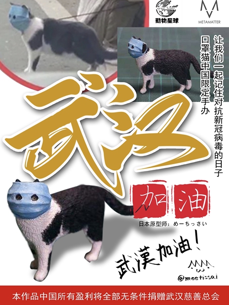A poster of the charity project selling the masked cat figurines, with proceeds donated to Wuhan, Hubei province.[Photo provided to China Daily] |