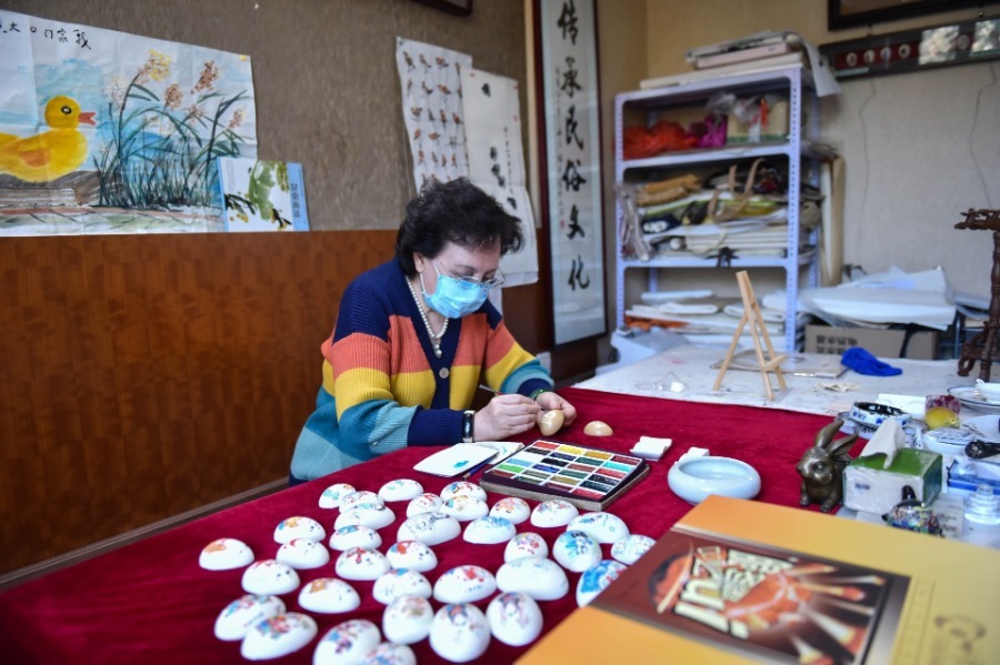 As the world is battling the COVID-19 epidemic, Folk artist Zhao Wei recently created a series of eggshell carvings showcasing people's fighting spirit during the ongoing crisis. Egg carving is a traditional folk art form that originates from the custom of giving carved eggs as gifts at weddings and birthday parties. It is a sophisticated craft as it often involves engraving, painting, as well as embroidery. Given that the carving is conducted on eggshells, it is often called "the most fragile art,", which requires ultimate precision. [Photo/Xinhua] |