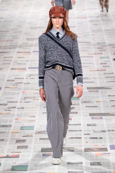 Elements like ties and loose pants are obvious in Dior's womenswear collection at the Paris Fashion Week in February.[Photo provided to China Daily] |