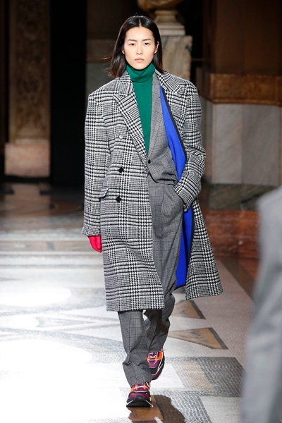 Chinese model Liu Wen walks the runway during the Berluti menswear show at the Paris Fashion Week.[Photo provided to China Daily] |
