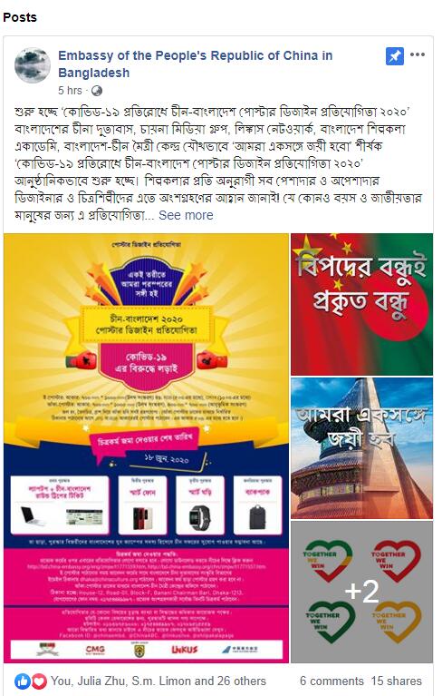 Facebook of the Chinese embassy to Bangladesh. [Phtoto provided to Chinaculture.org]