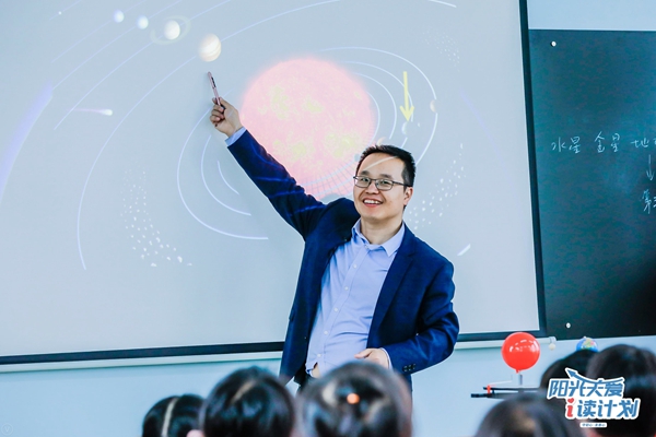 Planetary scientist Zheng Yongchun holds a lecture for primary school students in Guangxi Zhuang autonomous region last year.[Photo provided to China Daily] |