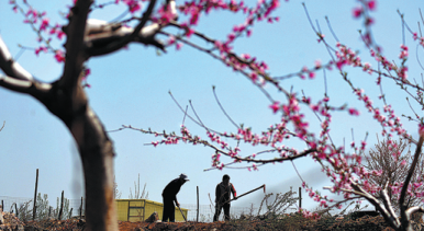 Zhu and Qi till a field on April 13.ZHAO DONGSHAN/ZHANG ZHAOWEI/FOR CHINA DAILY