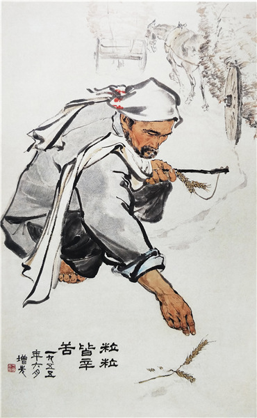 Artwork by Fang Zengxian shown in an online exhibitionspotlighting workers at the National Art Museum of China on May 1 in Beijing. [Photo provided by NAMOC]