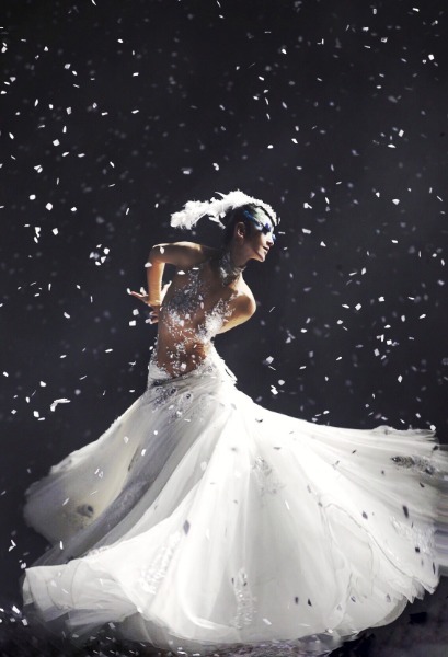 Dancer Yang Liping performs Peacock of Winter, wearing a special headgear designed by Sui.[Photo provided to China Daily] |