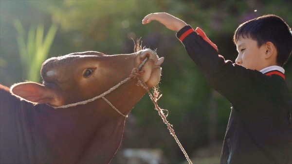 A child poet, Shi Yingsuo, plays with an ox in the countryside, as seen in a documentary about the poetry-loving students shown on China Central Television in February.[Photo provided to China Daily] |