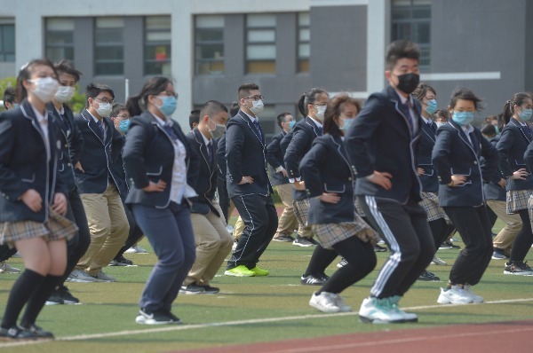 Students exercise during breaks.[Photo by Cao Zichen/For China Daily] |