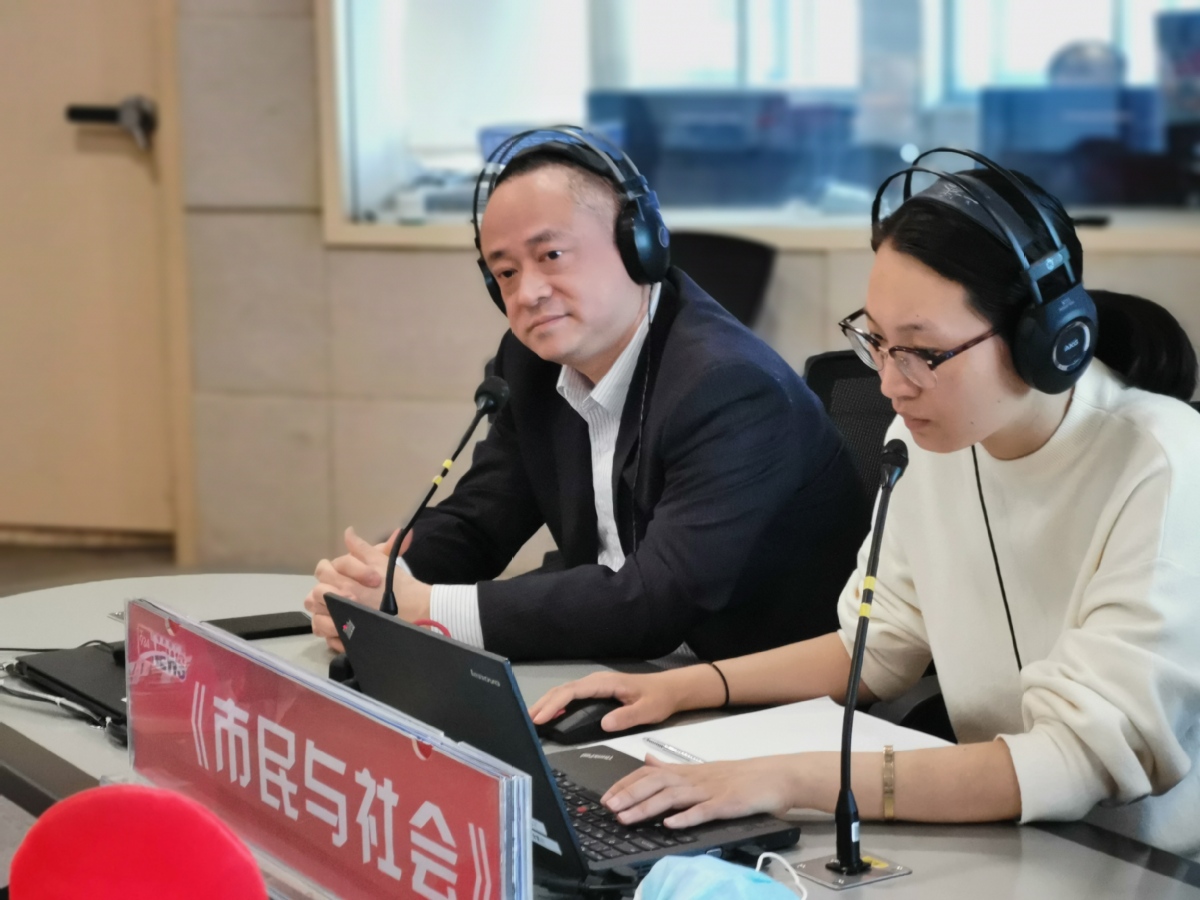 Sun Xiaodong, deputy director of the Shanghai center for disease control and prevention, shares information about the novel coronavirus on a radio program.[Photo provided to China Daily] |