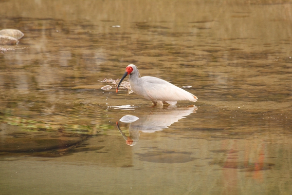 The crested ibis likes to forage in quiet water fields.[Photo provided to China Daily] |