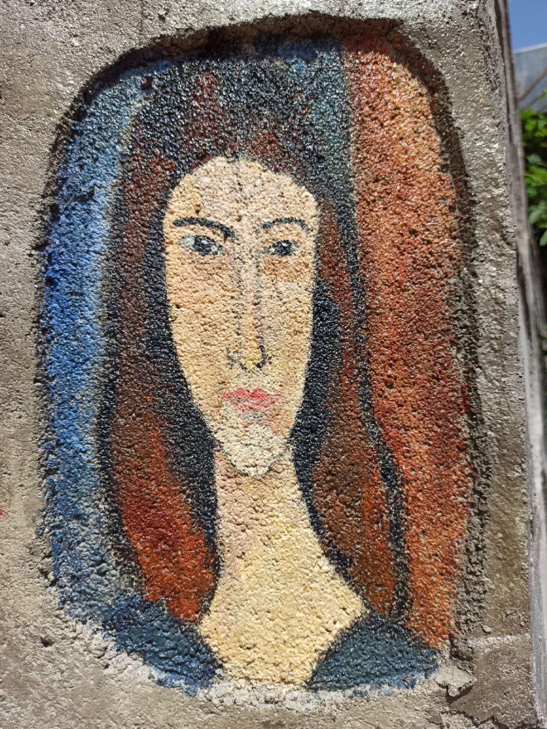 In the past four months, 22-year-old art student Liu Zhiwen created more than 150 copies of famous portrait paintings on a wall of his hometown of Daowu village, Central China's Hunan province.  [Photo provided to China Daily]