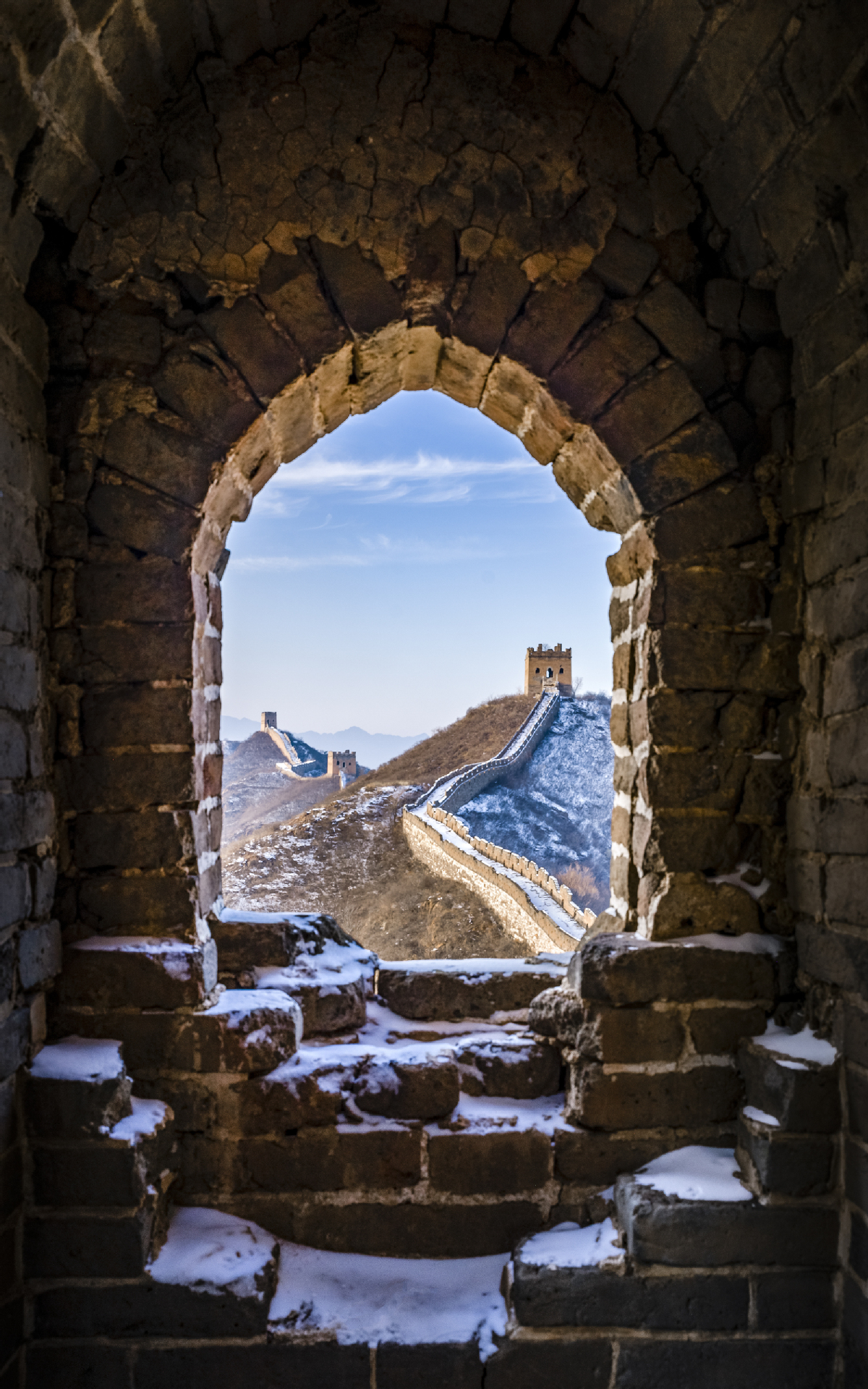 One of the photos Yang Dong has taken on various sections of the Great Wall: a snowy scene on Jinshanling, Hebei province. [Photo by Yang Dong/provided to China Daily] |