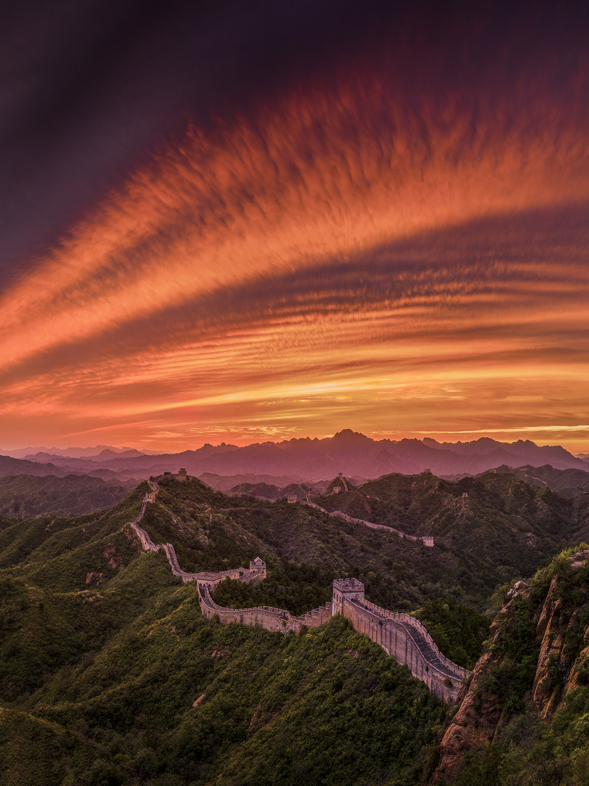 Jinshanling at dusk, one of the photos Yang Dong has taken on various sections of the Great Wall. [Photo by Yang Dong/provided to China Daily] |