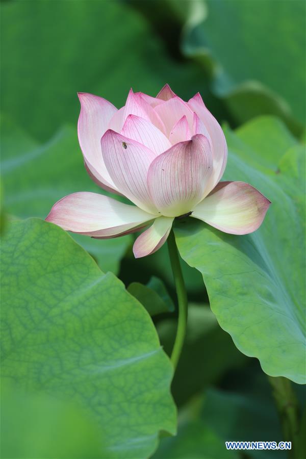 Photo taken on June 3, 2020 shows a lotus flower in Yuping Dong autonomous county, Southwest China's Guizhou province. [Photo/Xinhua]