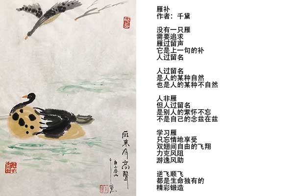 The two poems are translated by Chu Yan, a graduate from the University of Melbourne who excels at translating modern Chinese poems.