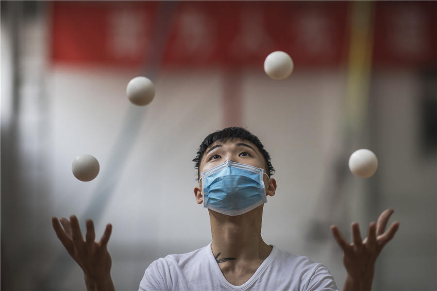 Huang and her partner Liu have been working together for more than eight years. During the coronavirus outbreak, they practiced at home almost every day, and encouraged each other through video. "The range of activities at home is limited, and you can only press your legs, stretch your muscles, and do some basic exercises," says Huang. She has gained five pounds during the lockdown.