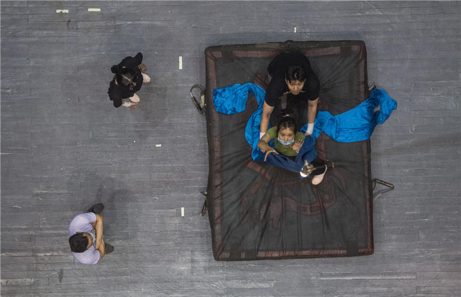 Actors rehearse in the theater. XIAO YIJIU/XINHUA