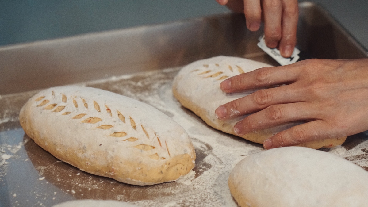 After putting the dough into the oven, Xu likes to sit there and observe the process as the bread is transformed.