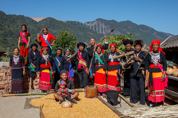 A family photo taken by photographer Chen Lin of the Wa ethnic groups in Southwest China's Yunnan province.[Photo provided to China Daily] |