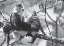 Black-and-white snub-nosed monkeys in the Baima Snow Mountain National Nature Reserve. [Photo/Xinhua]