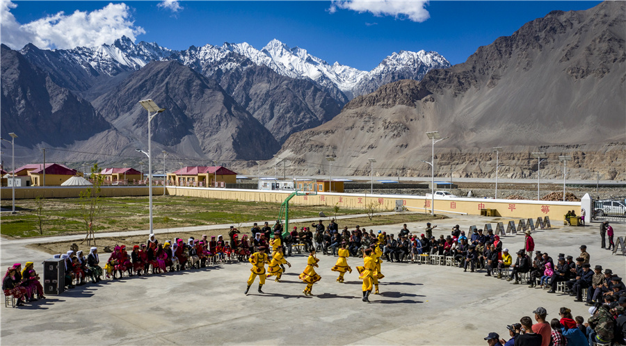 Trekking in the mountains and waters in the hope of offering a cultural feast to the villagers, the performers put on show some of their best acts that are also listed as national intangible cultural heritage-Tajik eagle dance and folk songs, as well as programs on the theme of poverty alleviation and people's livelihood.