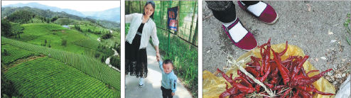 Huang Sixiu (center), born and raised in the remote village of Pingqiao in Pu'an, a poverty-stricken county of Qianxinan Bouyei and Miao autonomous prefecture in Guizhou province (left), does a live-stream webcast of three hours almost every day with a focus on daily life contents including visits to local markets and cooking meals. [Photo provided to China Daily] |