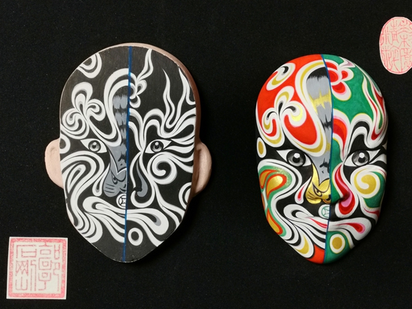 To attract young people, he has created fashionable designs based on Peking Opera makeup and has painted Peking Opera faces on toys and half a side of the face with only black lines on other items.