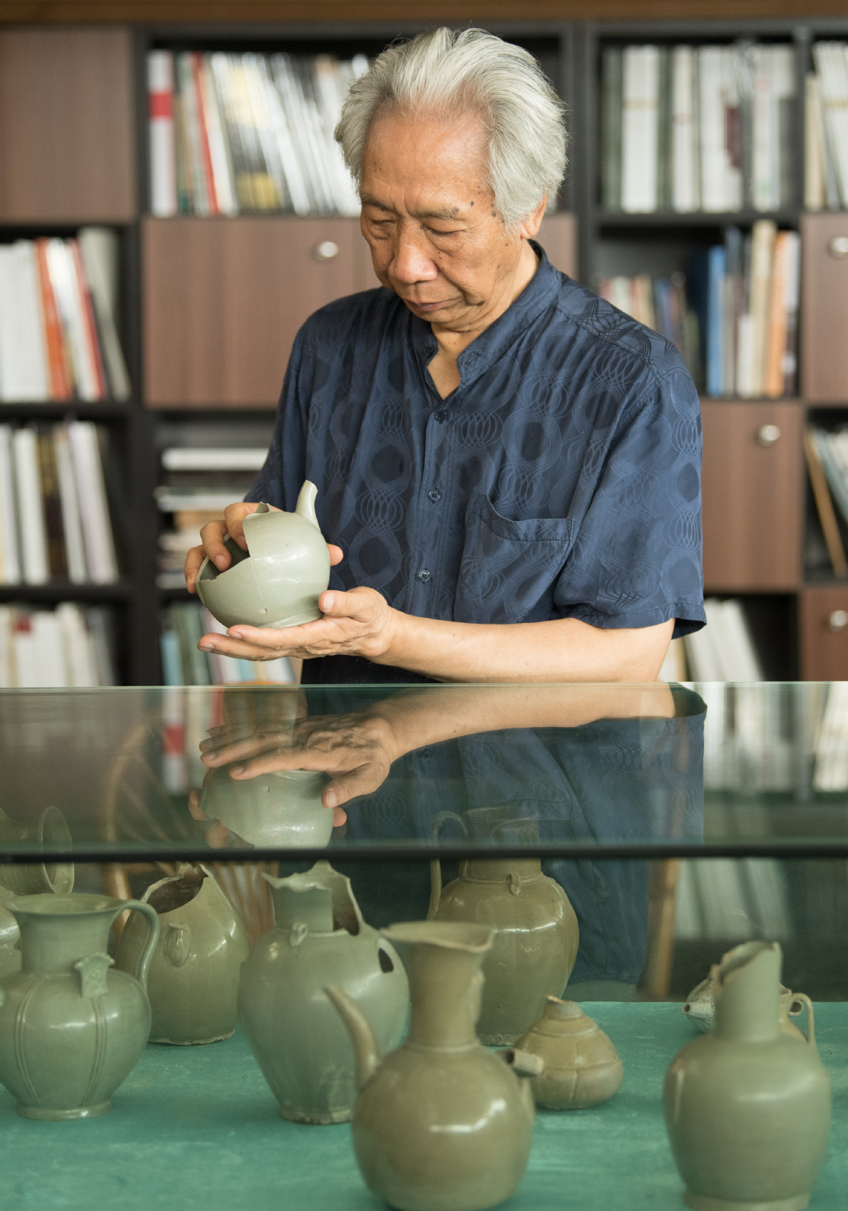 Wen Changqing, born in 1949, has studied the craft of making mise porcelain since the 1980s.[Photo/Xinhua]