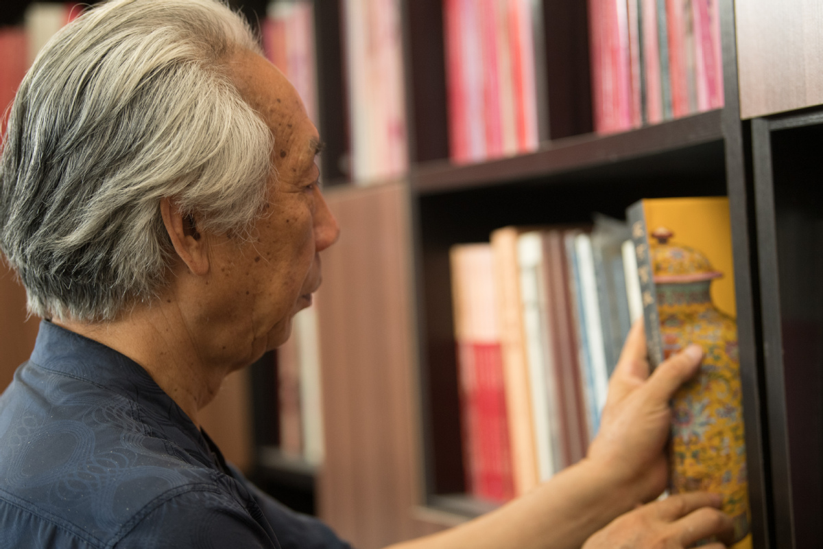 Wen Changqing, born in 1949, has studied the craft of making mise porcelain since the 1980s. [Photo/Xinhua]