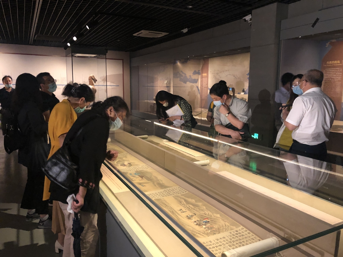Visitors appreciate a cultural relic at the exhibition The Silk Roads: Before and After Richthofen at China National Silk Museum in Hangzhou, Zhejiang province, on June 19, 2020.
