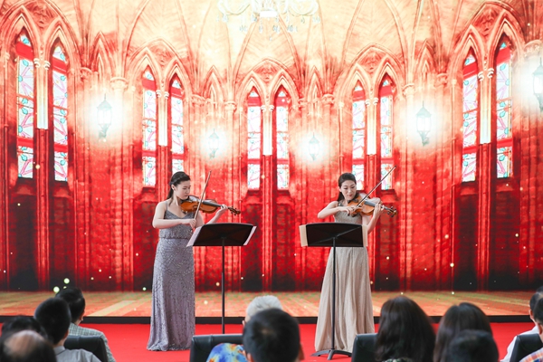 Two students play the violin.[Photo provided to chinadaily.com.cn] |