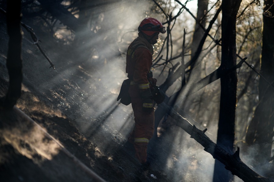 It is the ninth day for the firefighters of Xichang Forest Fire Brigade on the northern line of the fire scene in Muli county, Sichuan province, April 6.[Photo by Cheng Xueli/For China Daily] |