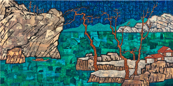 The Blue-green Landscape by Xue Song. [Photo provided to China Daily] |