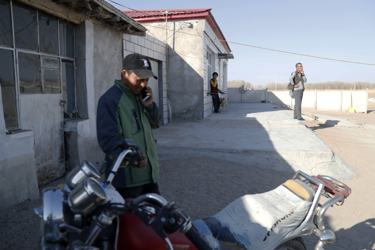 Bai and relatives stand outside their newly built house. [Photo by Han Haidan/China News Service]