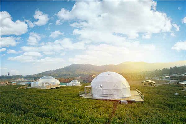 A tent hotel at Baoshengyuan, Maoshan Mountain scenic area. [Photo provided to China Daily] |