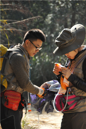 Zhou Deyao and his wife check on some bugs they've collected in Hainan province. [Photo provided to China Daily] |