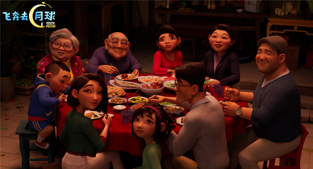 Fei Fei celebrates the Mid-Autumn Festival with her family. [Photo provided to China Daily]