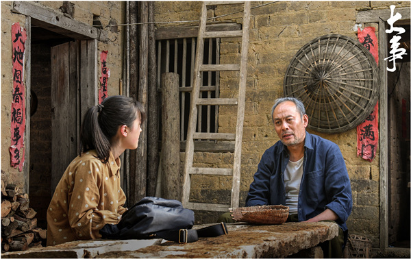 Veteran actor Zhang Guangbei (right) and actress Yun Lan star in the film Great Things. [Photo provided to China Daily] |
