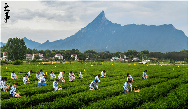 One scene features local villagers harvesting tea. [Photo provided to China Daily] |