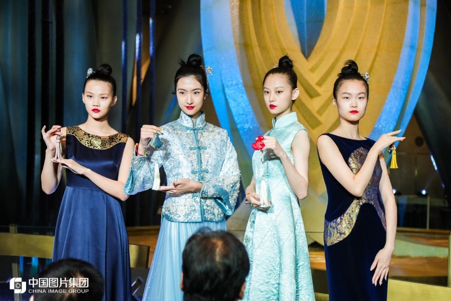 A fashion show of 26 Chinese sachets made by Nanjing Yunjin Brocade Research Institute and Lanzhou Foci Pharmaceutical Co was staged in Shanghai on June 18.[Photo provided to chinadaily.com.cn]