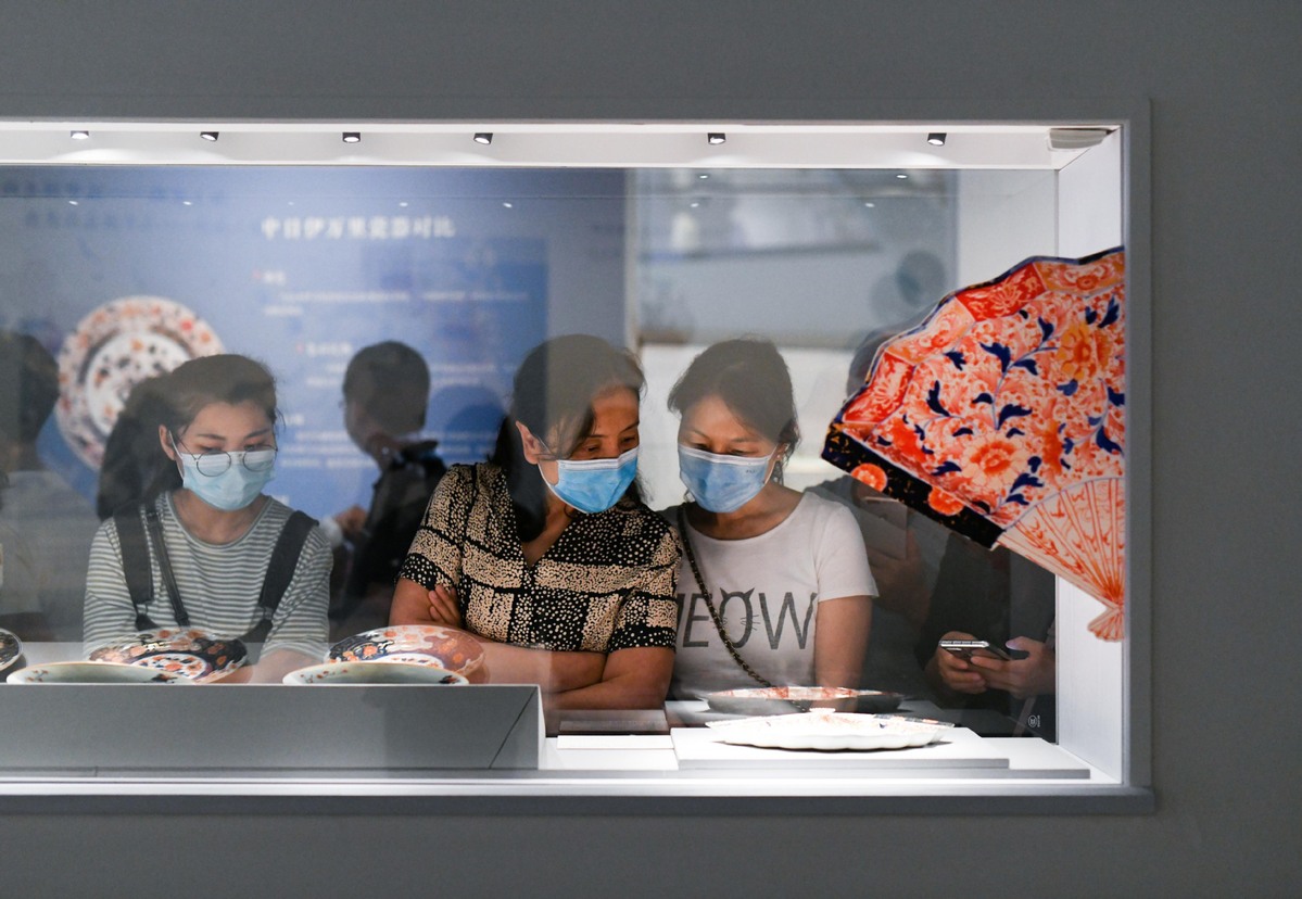 Visitors view exhibits at Jingyan: Chinese and Japanese Imari Porcelain from the Qing Dynasty in the Chengdu Museum on July 4 in Chengdu, Southwest China's Sichuan province. [Photo/Xinhua]
