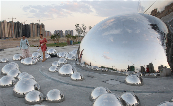 Sculptures of big bubbles symbolize the once-booming oil industry in Karamay in the Xinjiang Uygur autonomous region. [Photo by Zhuo Jianling/For China Daily] |