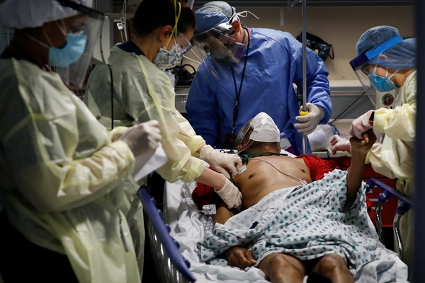 A patient from a nursing home is taken to an emergency hospital in Yonkers, New York State in April.[Photo provided to China Daily] |
