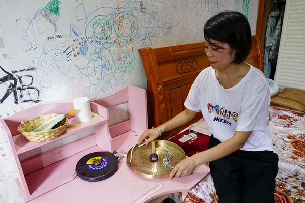 Hou keeps a whistle and a gong by her bedside every day in case of emergency.[Photo/Xinhua] |