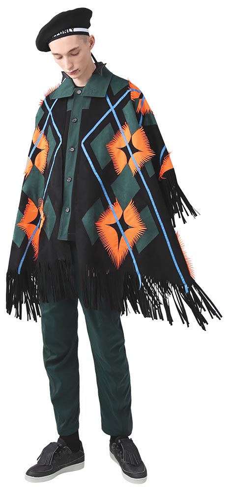 The oversized parka/bomber jacket featuring unconventional details has become one trademark look of Staffonly style, while in this collection, a transformable hoodie resembles a sailor's shirt. The hoodie embodies "the witty gene of Staffonly". The pair have used the high-tech microfibre Ultrasuede on garments, a soft structure carrying a matte texture, with laser-cut sharp-but-soft edge overlaps.