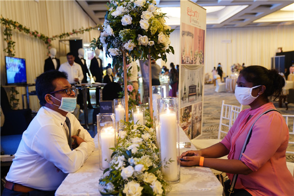 There were some large screens at the exhibition showing colorful weddings in various styles. A manager who participated in the wedding boutique exhibition said that an Indian-style wedding in Sri Lanka would cost between 3 million and 6 million rupees (about 16,000 U.S. dollars to 32,300 dollars), while a grand Sri Lankan-style wedding will cost at least 2 million rupees (10,765 dollars).