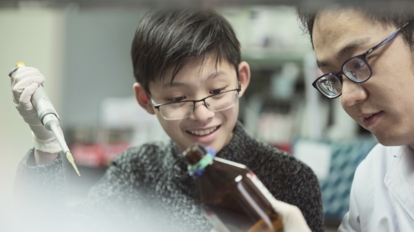 Gar Jun Ho, 13, a former contestant on British quiz show Child Genius, conducting an experiment, as seen in the film.[Photo provided to China Daily] |