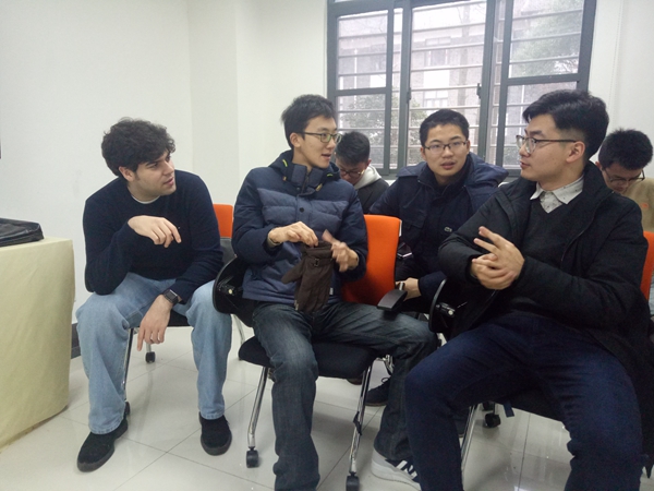 Serbian Filip Filipovic attends a discussion panel with classmates on campus in Shanghai.[Photo provided to China Daily] |